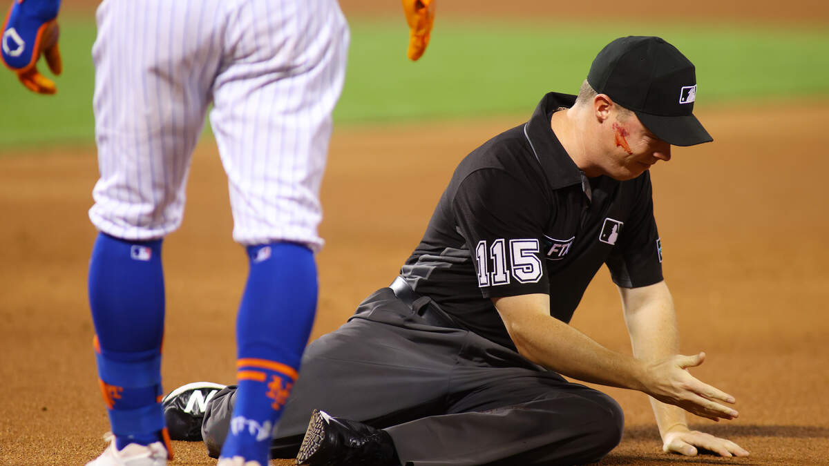 Wow! During the Cardinals and Mets game, Umpire Jr. Valentine got hit in the face with a baseball. It looks painful! See video here. 1 of 1Photo: Getty Images